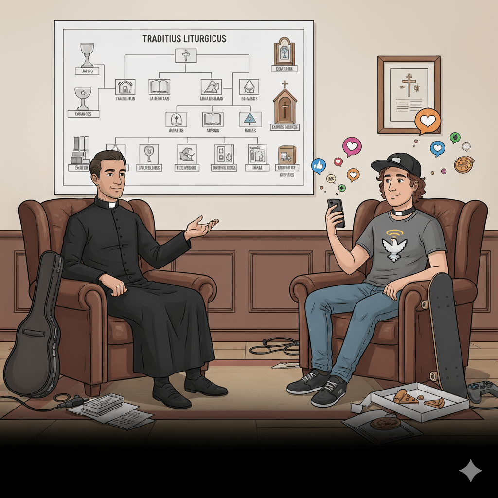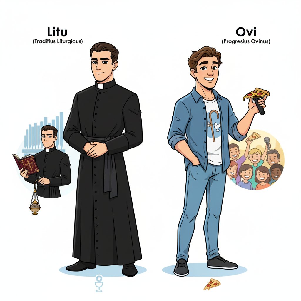 Hoy inicia una serie de episodios, que deseo compartir, en forma de guión. Espero que los disfruten y que puedan aprovechar las aventuras y desventuras de estos personajes. Padre Litu y Padre Ovi son sacerdotes católicos, ordenados en 2024. Nacieron en 1997, ingresaron al seminario en 2015. Se reconocen como parte de la Generación Z. Son personajes ficticios. Cualquier parecido con la realidad es fruto de algún algoritmo, humano y divino.