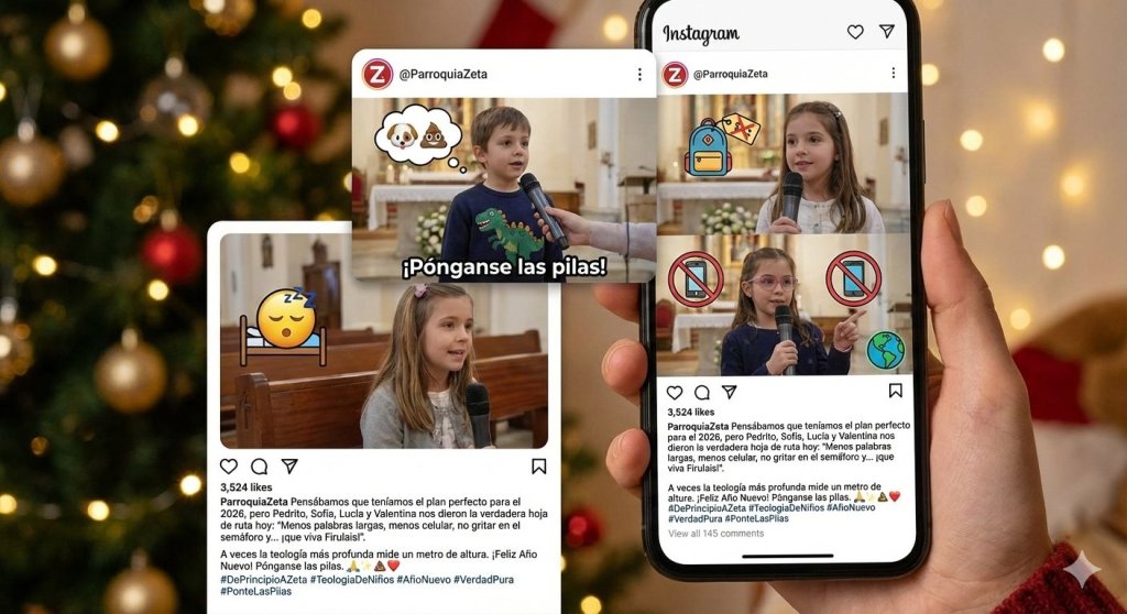 @ParroquiaZeta: Pensábamos que teníamos el plan perfecto para el 2026, pero Pedrito, Sofía, Lucía y Valentina nos dieron la verdadera hoja de ruta hoy: «Menos palabras largas, menos celular, no gritar en el semáforo y… ¡que viva Firulais!». A veces la teología más profunda mide un metro de altura. ¡Feliz Año Nuevo! Pónganse las pilas. 🙏✨💩❤️ #DePrincipioAZeta #TeologiaDeNiños #AñoNuevo #VerdadPura #PonteLasPilas